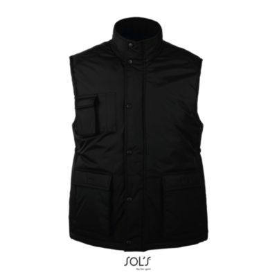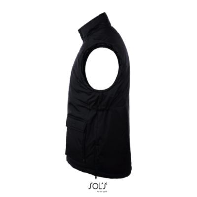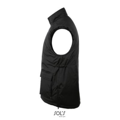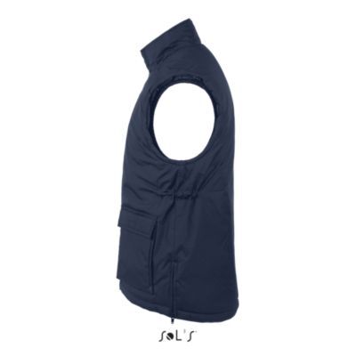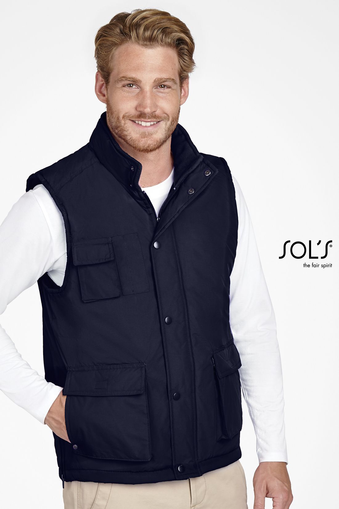 ЖИЛЕТ ИЗ ТКАНИ "RIPSTOP". Двойной воротник с застежкой, флисовая подкладка; 2 передних кармана с отверстием со стороны упора для рук, усиленным 2 заклепками и отверстием сверху с клапаном + 2 нагрудных кармана + 1 внутренний карман; Внутренний шнурок на талии; Эластичные ветрозащитные проймы; 2 боковые молнии внизу для удобства передвижения