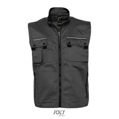 ЖИЛЕТ РАБОЧИЙ БЕЗ ПОДКЛАДКИ. 6 карманов, включая внутренний карман и карман для мобильного телефона; клапаны на карманах со светоотражающими лампасами; 3 вставки для ношения авторучек; застежка на молнии черного цвета;; специальная этикетка для указания персональных данных, вышитая внутри