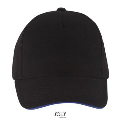 БЕЙСБОЛКА ИЗ 5 КЛИНЬЕВ. 5 клиньями; жесткий козырек "сэндвич"; 4 вышитых отверстия для вентиляции; регулируемая металлическая застежка