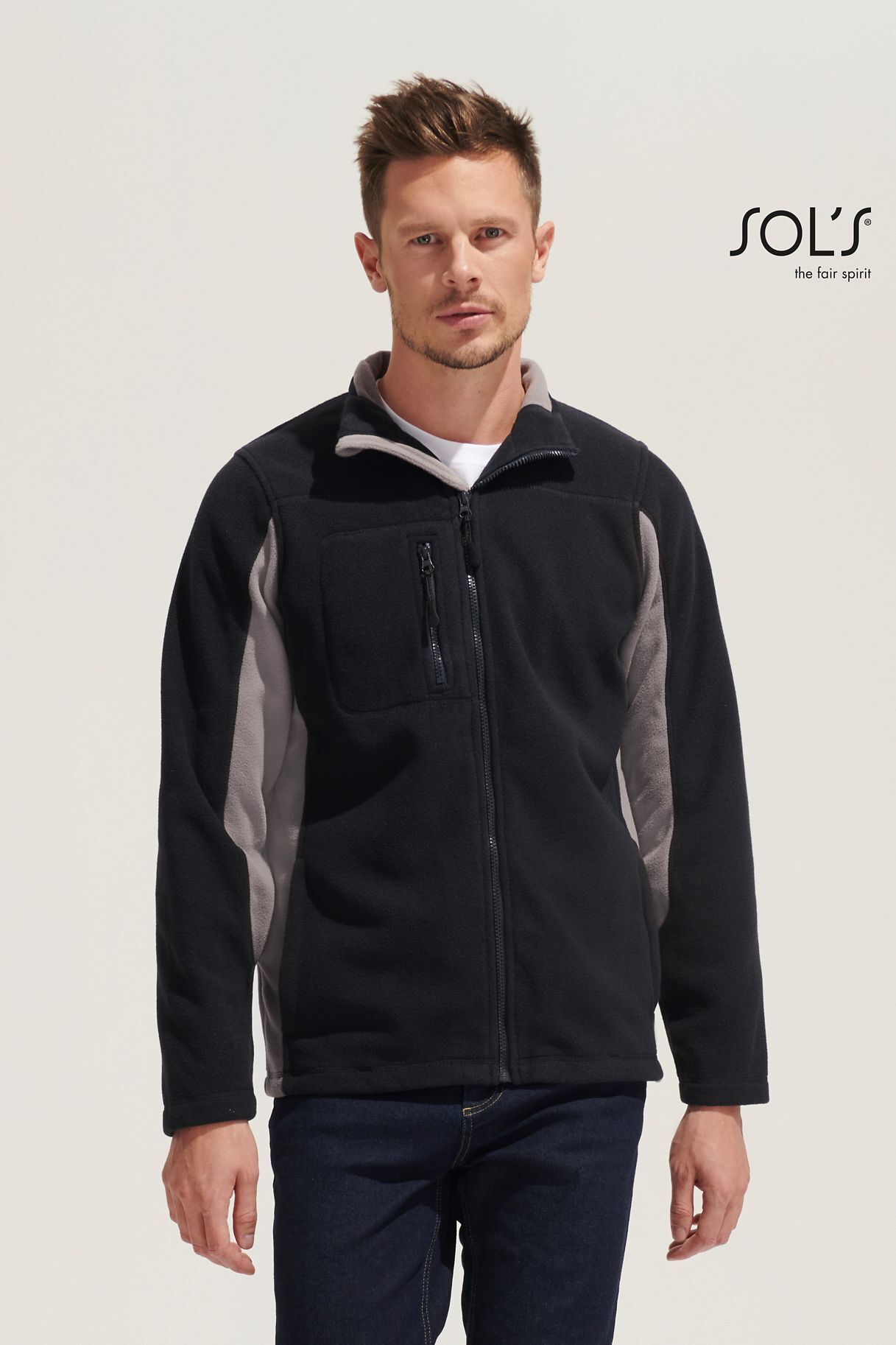 КУРТКА МУЖСКАЯ ДВУХЦВЕТНАЯ С ЗАСТЕЖКОЙ НА МОЛНИИ. лазерный крой “shortcut”; обработка против образования катышков; укрепляющая тесьма из хлопчатобумажной саржи по вороту; Подбитый воротник-стойка с отделкой косой бейкой; 2 кармана с кантами; контрастные вставки на воротнике, по бокам изделия и на рукавах