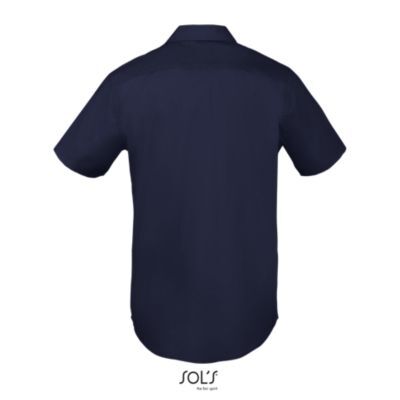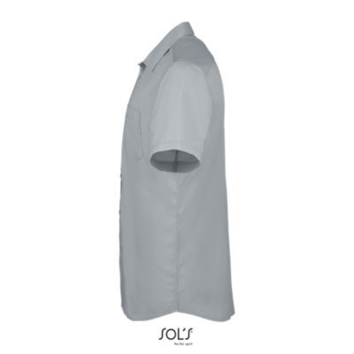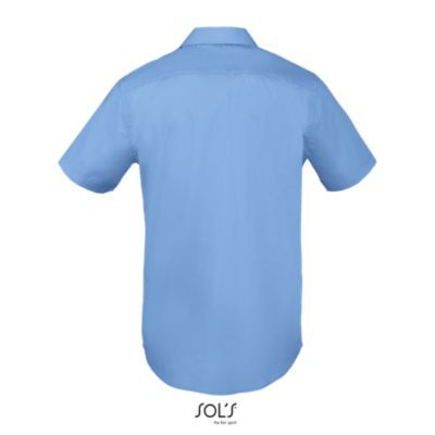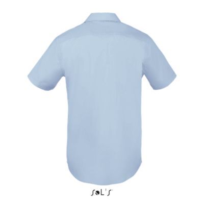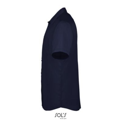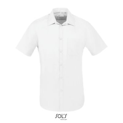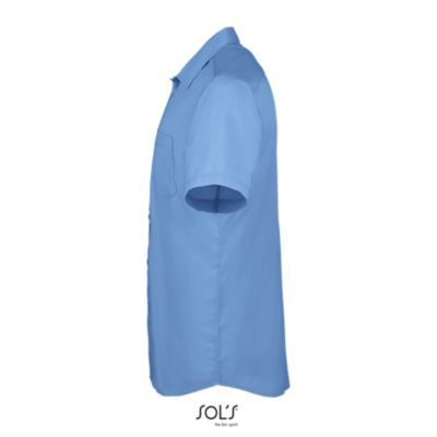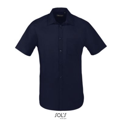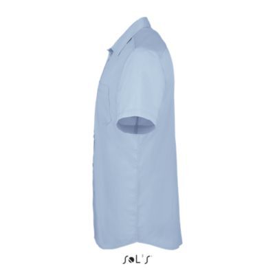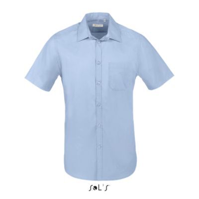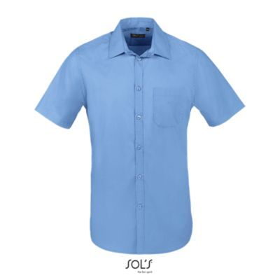 РУБАШКА МУЖСКАЯ ИЗ ПОПЛИНА С КОРОТКИМ РУКАВОМ. Полуприлегающий крой; Короткий рукав; Классический жесткий воротник; Планка с 7 пуговицами в цвет изделия; Съемные косточки в воротнике; Нагрудный карман слева