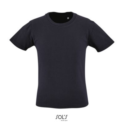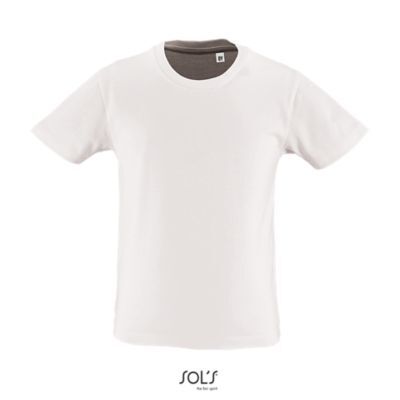 ДЕТСКАЯ ФУТБОЛКА С КРУГЛЫМ ВЫРЕЗОМ И КОРОТКИМ РУКАВОМ. Круглый вырез отделан резинкой; Кроеный трикотаж; Короткий рукав; Укрепляющая тесьма по вороту