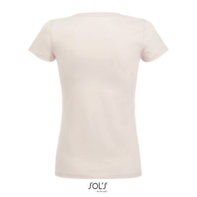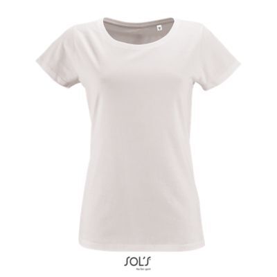 ЖЕНСКАЯ ФУТБОЛКА С КОРОТКИМ РУКАВОМ. Круглый вырез отделан резинкой; Кроеный трикотаж; Приталенная модель; Короткий рукав; Укрепляющая тесьма по вороту