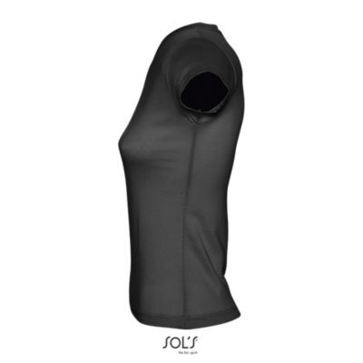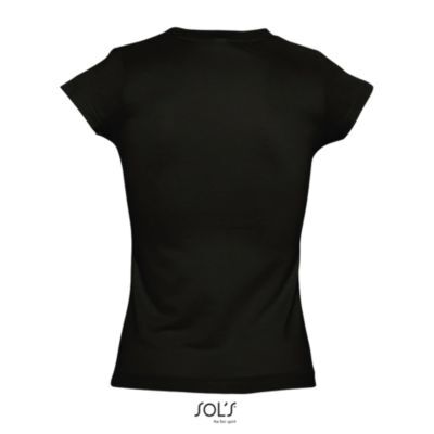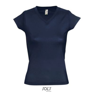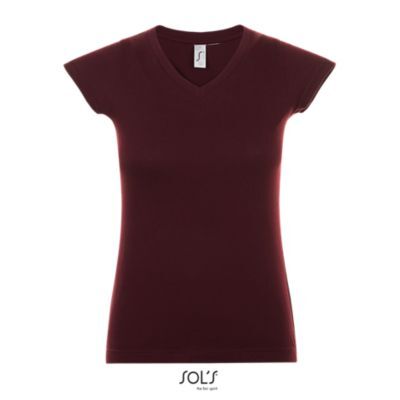 ФУТБОЛКА ЖЕНСКАЯ С V-ОБРАЗНЫМ ВЫРЕЗОМ. Усиливающая лента на шее; Короткие рукава; Приталенный крой; V-образный вырез с ребристыми краями; Покрой и пошив