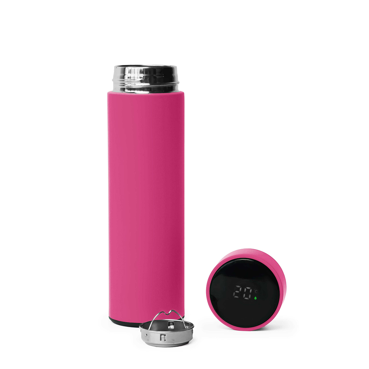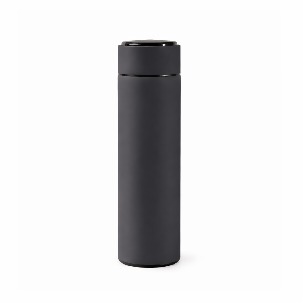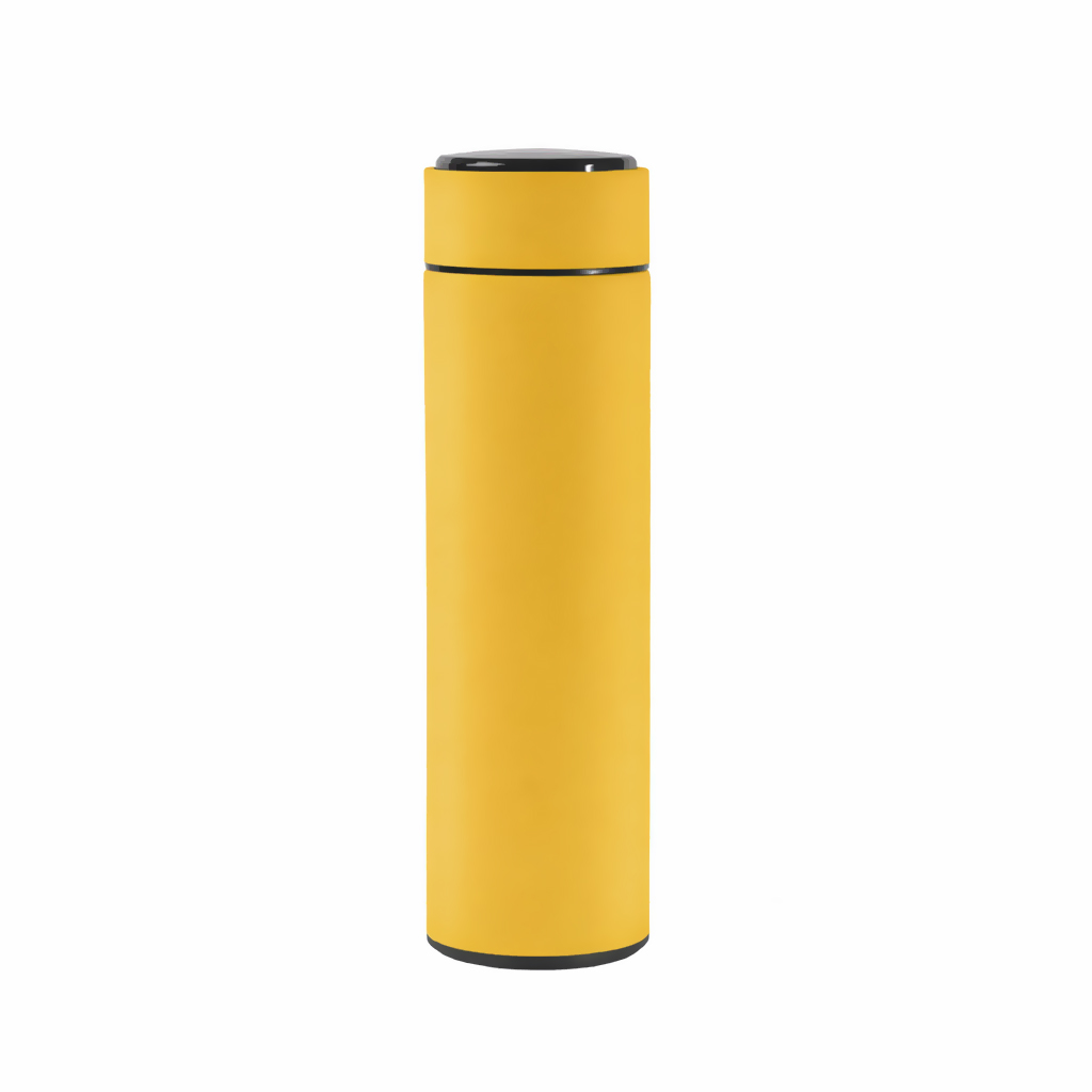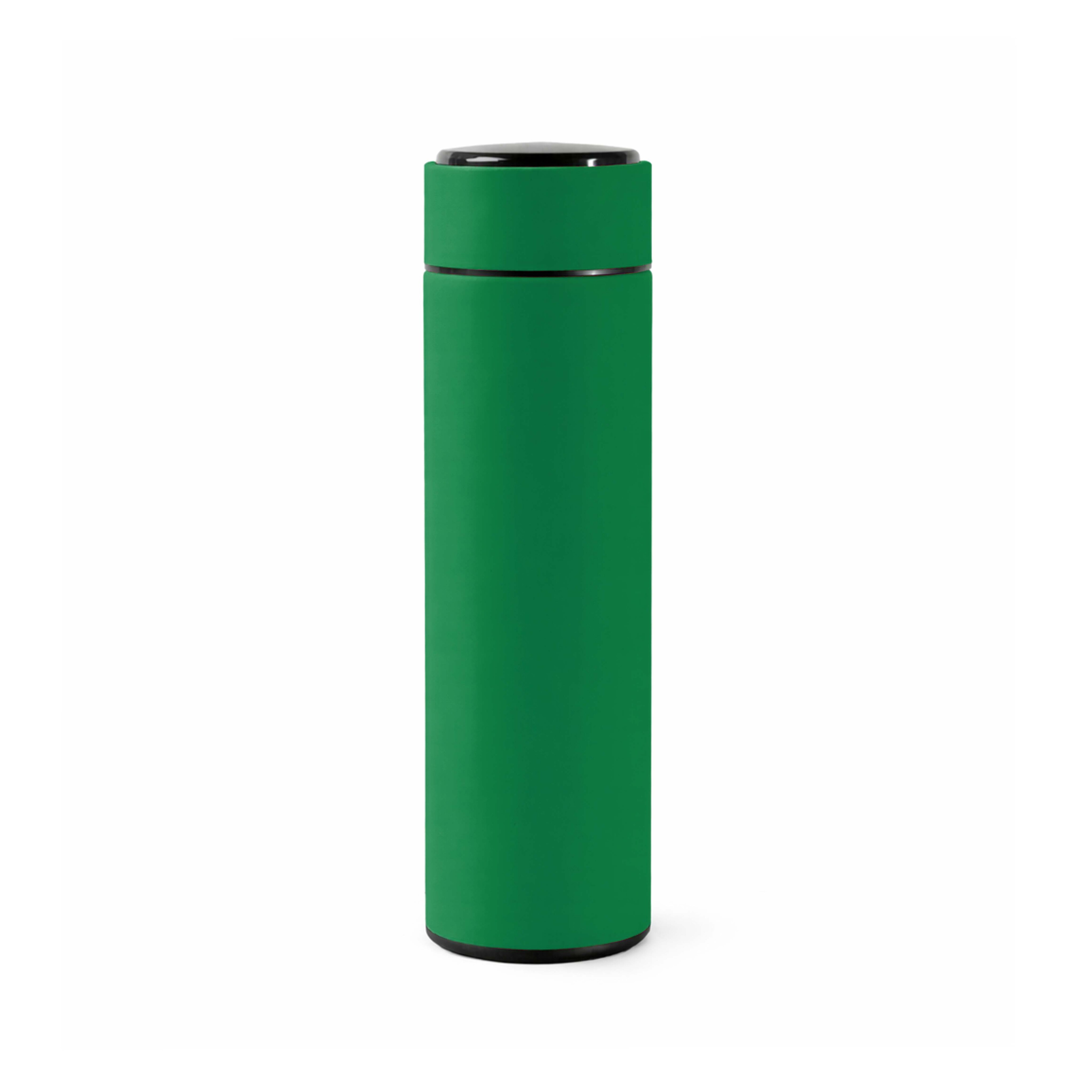 Термос из нержавеющей стали, покрытый цветным soft touch, с крышкой, в которой встроен термометр и LED дисплей, показывающий температуру внутри термоса. Объем: 500 мл. Упаковка: каждый термос в крафт коробке.